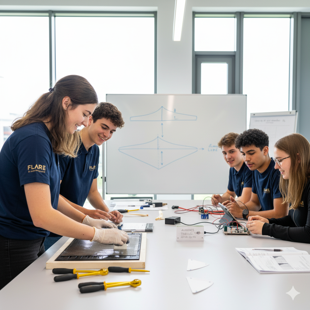 FLARE Darmstadt is a student led engineering community focused on designing, building, and testing innovative UAV systems that serve society. We unite students from many backgrounds around hands on aerospace projects, from solar powered aircraft to autonomous forest fire detection platforms. Our work brings practical engineering experience, teamwork, and a shared purpose together, creating a space where young engineers grow while contributing to a safer and more sustainable future.